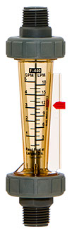 Medidores de agua de área variable conformados por un tubo transparente con flotador central (más pesado que el líquido) el cual se desplaza hacia arriba por el flujo ascendente de un fluido en la tubería. El tubo se encuentra graduado en litros ó galones para una lectura directa del caudal.